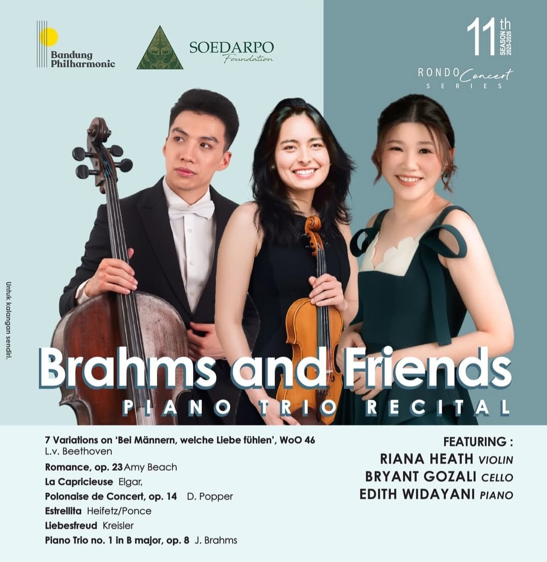 Acara yang merupakan bagian dari “Rondo Concert Series” ini menghadirkan tiga musisi ternama Indonesia “Riana Heath (violin)”, “Bryant Gozali (cello)”, dan “Edith Widayani (piano)”,membawakan karya romantik “Johannes Brahms” dan komposer sezamannya, yang menurut media panduan acara nasional menjadi salah satu “Highlight” musik klasik Bandung awal tahun ini.