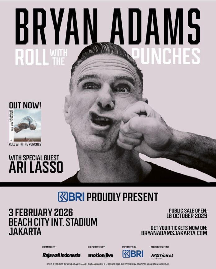 MEDIAAKU.COM — Legenda rock Kanada “Bryan Adams” dipastikan akan membawa ” World Roll With The Punches Tour” ke Beach City International Stadium, Jakarta pada 3 Februari 2026 sebagai bagian dari rangkaian tur dunia yang singgah di Asia Tenggara.