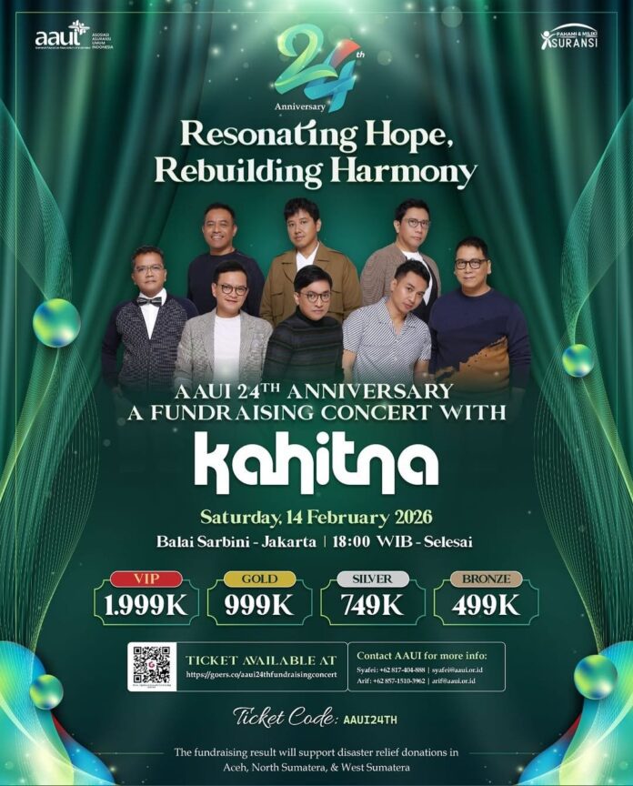 MEDIAAKU.COM — Grup musik legendaris “Kahitna” akan menghidupkan panggung “Balai Sarbini” Jakarta pada Sabtu malam 14 February 2026 dalam perayaan “24th Anniversary Resonating Hope, Rebuilding Harmony”, menyuguhkan nuansa musik romantis yang hangat bagi ribuan penonton yang hadir.