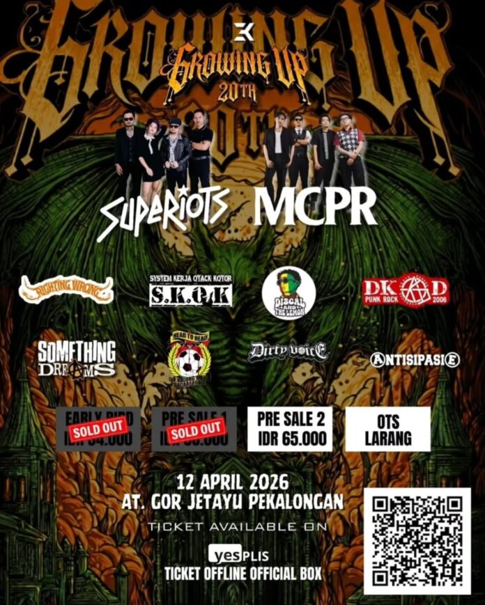MEDIAAKU.COM – Perayaan “Growing Up 20th 2026” yang merupakan peringatan 20 tahun “Kalong Mania” siap mengguncang Kota Pekalongan dengan digelarnya konser musik skala besar di GOR Jetayu pada 12 April 2026.