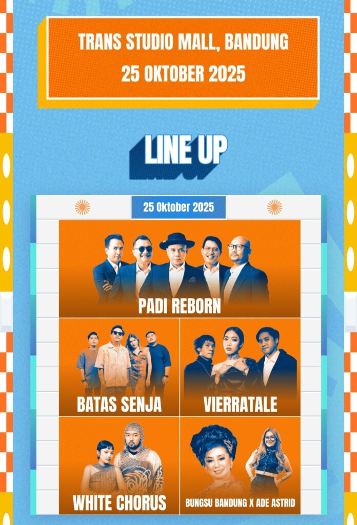 Festival ini menampilkan line-up artis lokal ternama seperti Padi Reborn, Vierratale, Batas Senja, dan lainnya, menjanjikan malam penuh nostalgia dan energi musik lintas genre dari rock hingga pop.