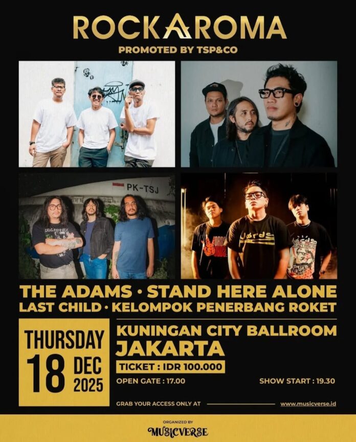 MEDIAAKU.COM – Komunitas musik rock Indonesia kembali diramaikan dengan gelaran Musicverse RockAroma 2025 yang siap menggebrak Kuningan City Ballroom, Jakarta Selatan, pada 18 Desember mendatang.