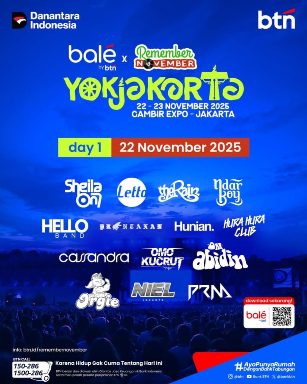 MEDIAAKU.COM – Festival musik Remember November 2025 dengan tema “Yokjakarta” siap menghadirkan nuansa nostalgia dan semangat budaya Yogyakarta di tengah hiruk-pikuk Jakarta, melalui penampilan lintas generasi di Gambir Expo Kemayoran pada 22-23 November 2025.